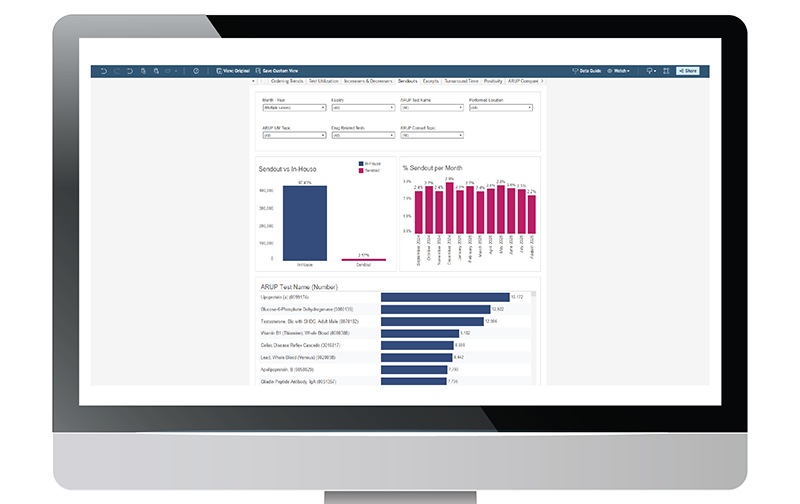 As your reference laboratory partner, ARUP is dedicated to helping you strengthen your laboratory’s service and operations by keeping testing close to the patient while contributing to systemwide revenue growth. Our laboratory analytics tools were developed to achieve these goals through optimizing utilization and containing costs while doing what’s best for the patient.