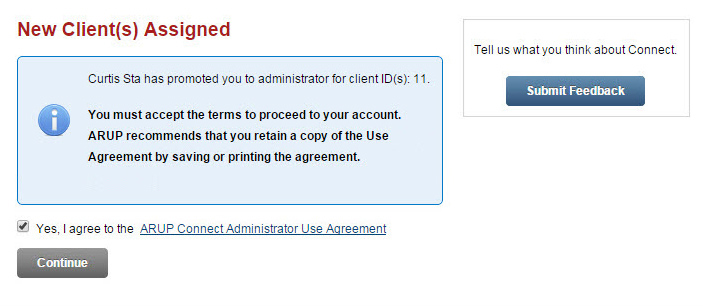 Note: If you are administrator for only one client ID, you will not see step 2 as described above. Skip to step 3.