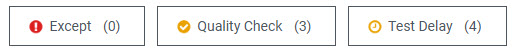 tab. Except, Test Delay, and Quality Check filters in the upper portion of that tab display how many orders are on except, test delay, or quality check.