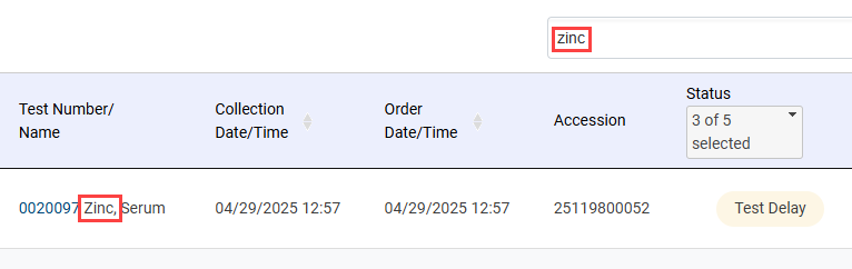 Note: If the test has an exception, a Resolve Order Issue option appears. Select Resolve Order Issue to resolve the exception in eExcept. If the test requires a quality check, a Respond Now option appears. Select Respond Now to provide the required information.