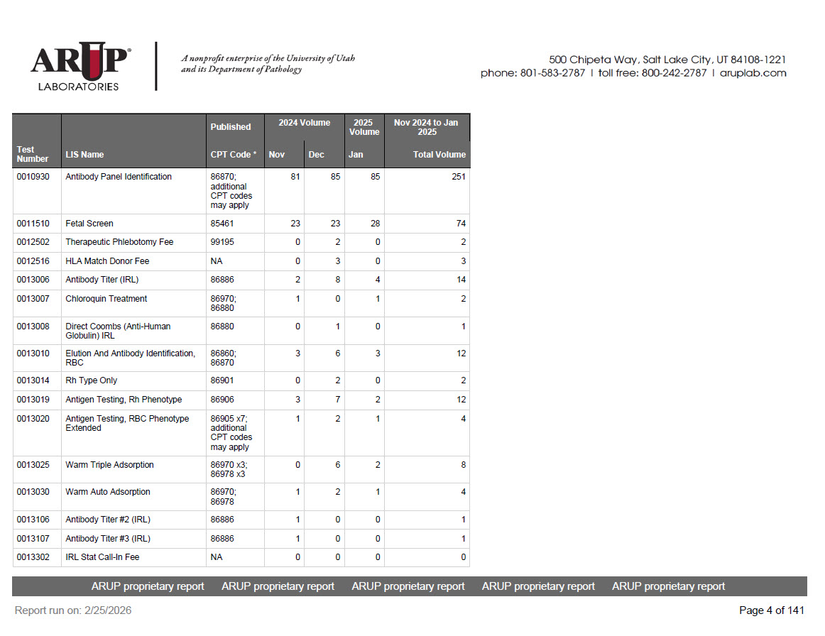 - Go to the ARUP website to get more detailed information about the test changes. If you have questions regarding the information contained in this report, please contact your Business Development Manager.