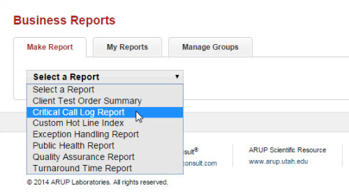 On the Make Report tab, choose a report from the Select a Report menu. See Available reports for information about each report.