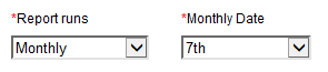 Select the frequency of report generation and the date for the report to generate. Note: The date of the month when report data is available varies
