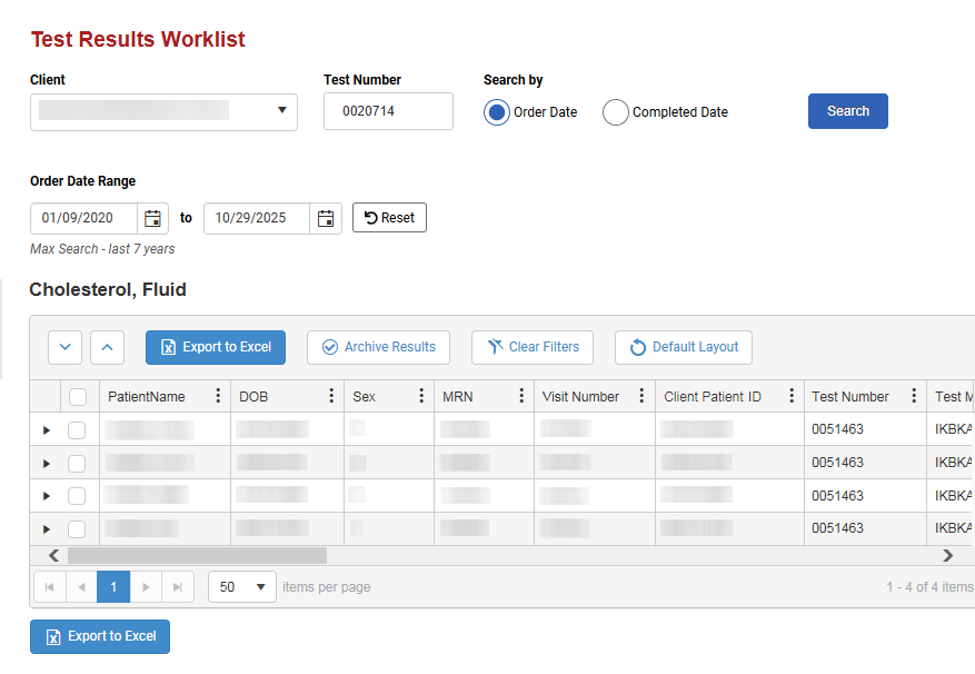 If the selected client ID is configured by an Admin to allow result archiving, you can archive test results so they no longer appear in searches.