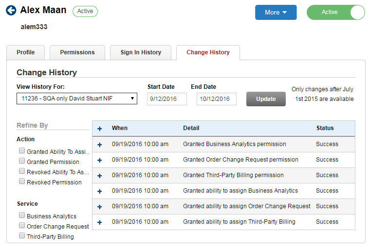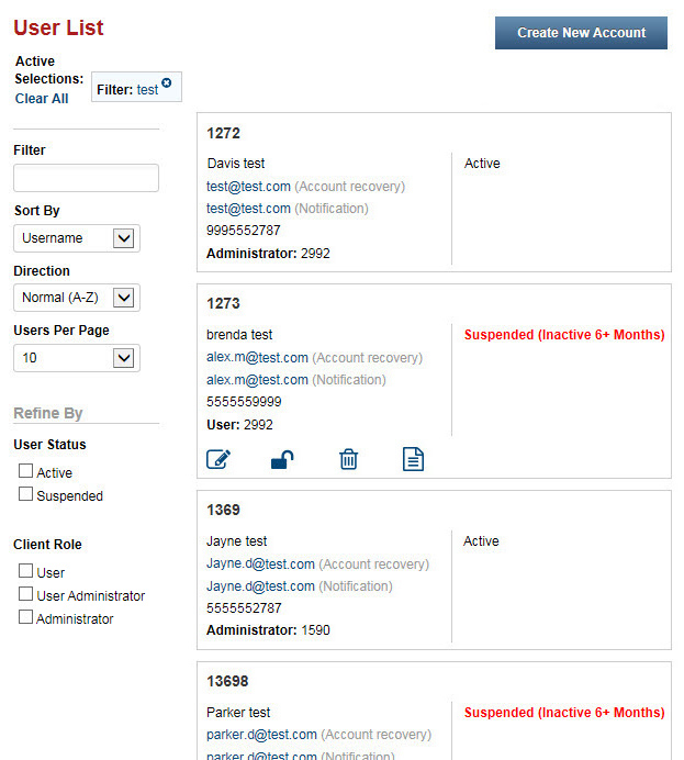 - Refine By. Select one or more options. The User List displays only users that match your selection(s).