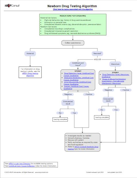 Resources that provide an overview of umbilical cord tissue collection for drug testing at ARUP.